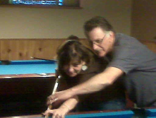 With the way I played pool last night you wouldn’t even know I grew up with a pool table in the house. The below photo shows you how Dan had to direct me with making a shot.